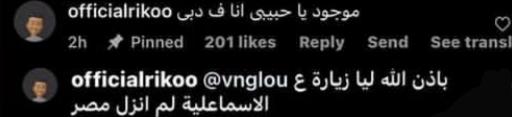 ورد ريكو على موسى سام، قائلًا: موجود يا حبيبي أنا في دبي، بإذن الله ليا زيارة على الإسماعيلية لما أنزل مصر.