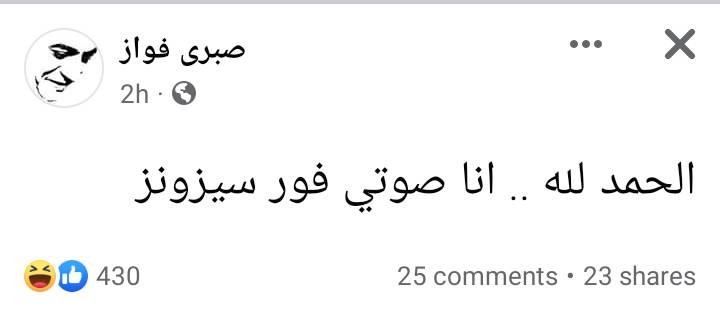 وكتب صبري فواز عبر حسابه الرسمي بموقع التواصل الإجتماعي “فيسبوك”، ردا على تصريحات ياسمين عز الأخيرة: الحمدلله.. أن صوتي فور سيزونز.