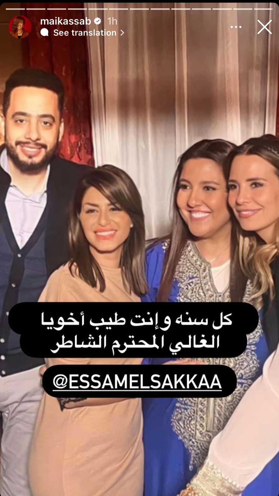 ونشرت كساب صورة تجمعها بعصام السقا ومنة فضالي وإيمان العاصي، وأشارت للفنان، معلقة: كل سنة وانت طيب أخويا الغالي المحترم الشاطر.