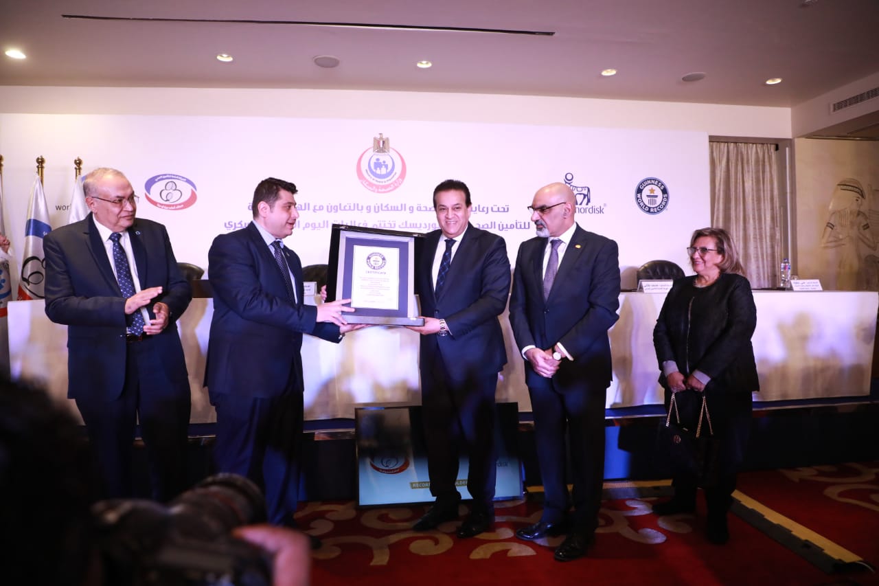 تسلم الدكتور خالد عبدالغفار وزير الصحة والسكان، شهادة من موسوعة «جينيس ريكورد» للأرقام القياسية بتسجيل أكبر تجمع لتوعية الأطفال المتعايشين مع مرض السكري من النوع الأول.
