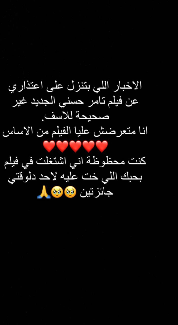 وكتبت هنا الزاهد عبر خاصية ستوري على حسابها بموقع تبادلالصور والفيديوهات انستجرام: "الأخبار اللي بتنزل على اعتذاري عن فيلم تامر حسنى الجديد غير صحيحة للأسف أنا متعرضش عليا الفيلم من الأساس".