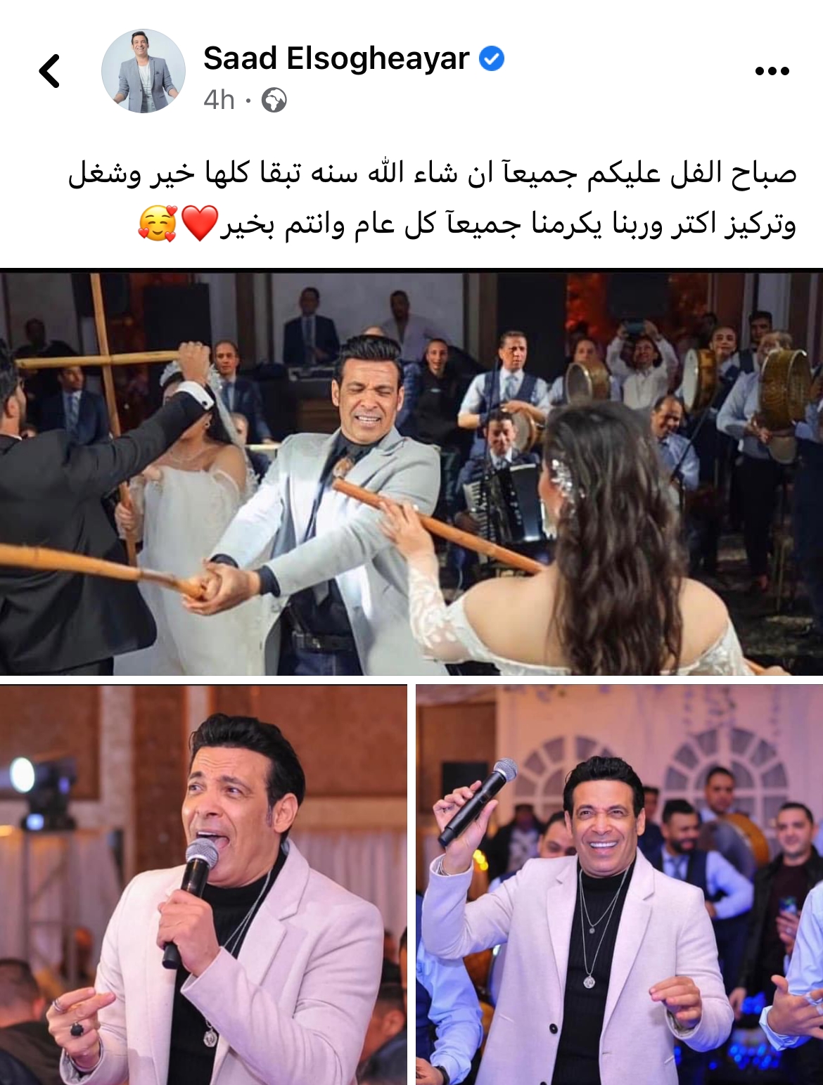ونشر سعد الصغير صور من الأفراح التي يحييها، وعلق: صباح الفل عليكم جميعآ ان شاء الله سنه تبقا كلها خير.