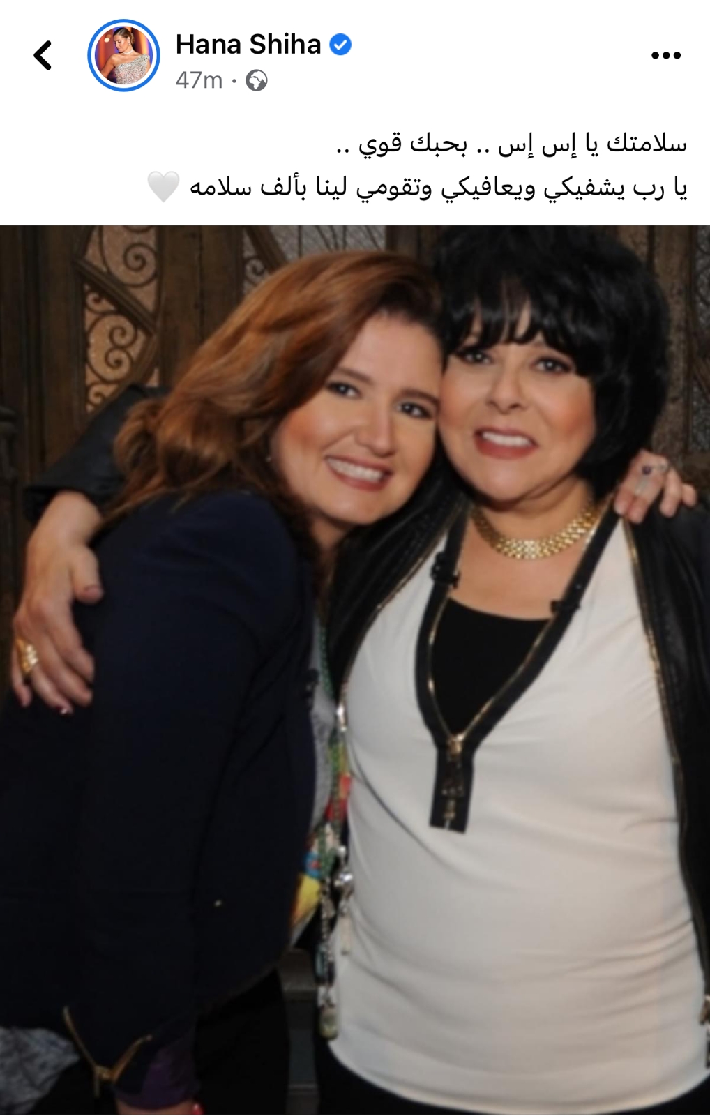ونشرت هنا شيحة صورة تجمعها بإسعاد يونس، وعلقت: سلامتك يا إس إس.. بحبك قوي.