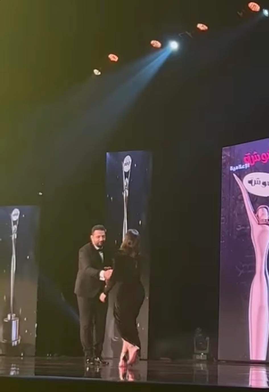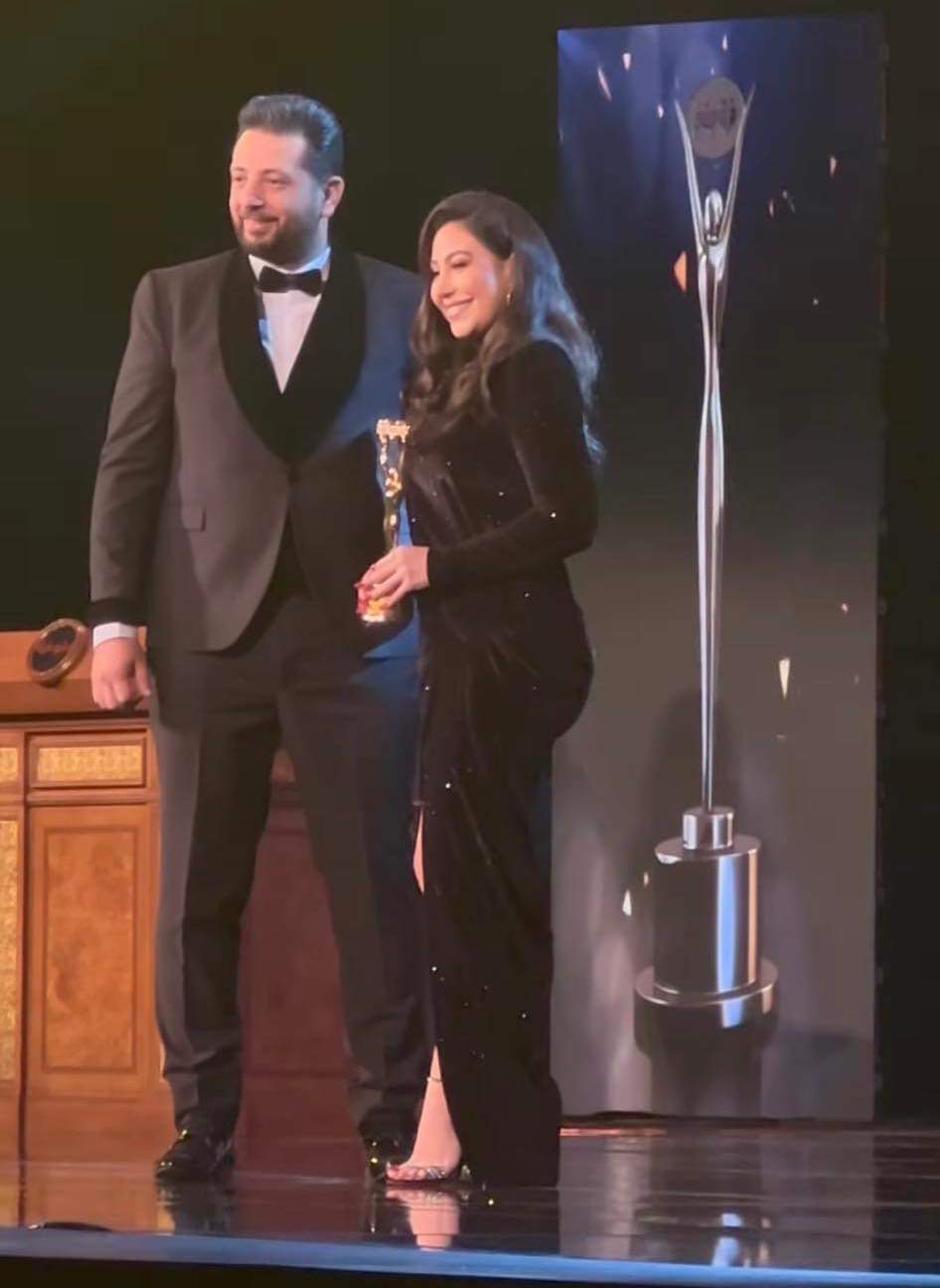 وتابعت: وبشكر الجمهور اللي صوتلي وبشكر مدير أعمالي وحبيبي أستاذ محمد فؤاد، مما أثار التساؤلات حول عدم حرصها على شكر زوجها في مثل هذه المناسبة.