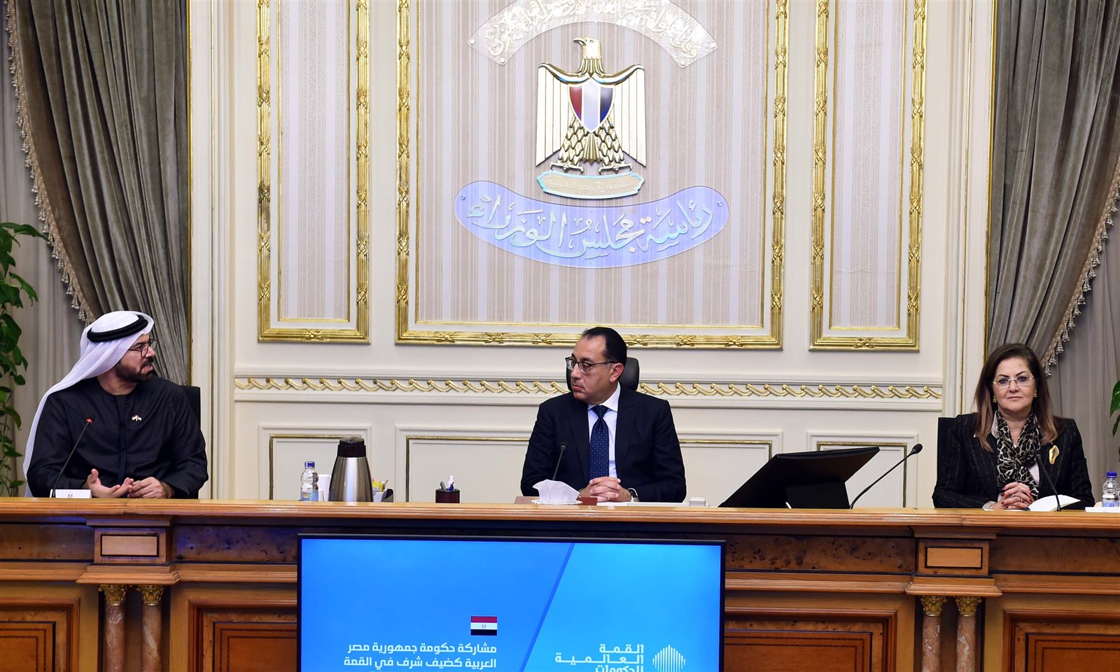 عقد الدكتور مصطفى مدبولي، رئيس مجلس الوزراء، اجتماعاً، اليوم؛ لاستعراض الترتيبات الخاصة بمشاركة مصر كضيف شرف فى فعاليات القمة العالمية للحكومات، التى تستضيفها مدينة دبي الإماراتية، وحضر الاجتماع الدكتورة هالة السعيد، وزيرة التخطيط والتنمية الاقتصادية، والدكتور عمرو طلعت، وزير الاتصالات وتكنولوجيا المعلومات، من الجانب المصري، ومن الجانب الإماراتي محمد القرقاوي، وزير شؤون مجلس الوزراء بدولة الإمارات العربية المتحدة، وعهود الرومي، وزيرة الدولة للتطوير الحكومي والمستقبل، و عمر سلطان العلماء، وزير الدولة للذكاء الاصطناعي والاقتصاد الرقمي وتطبيقات العمل عن بعد، وعبد الله ناصر لوتاه، مساعد وزير شؤون مجلس الوزراء للتنافسية والتبادل المعرفي، وعدد من المسئولين الحكوميين من الجانبين المصري والإماراتي.