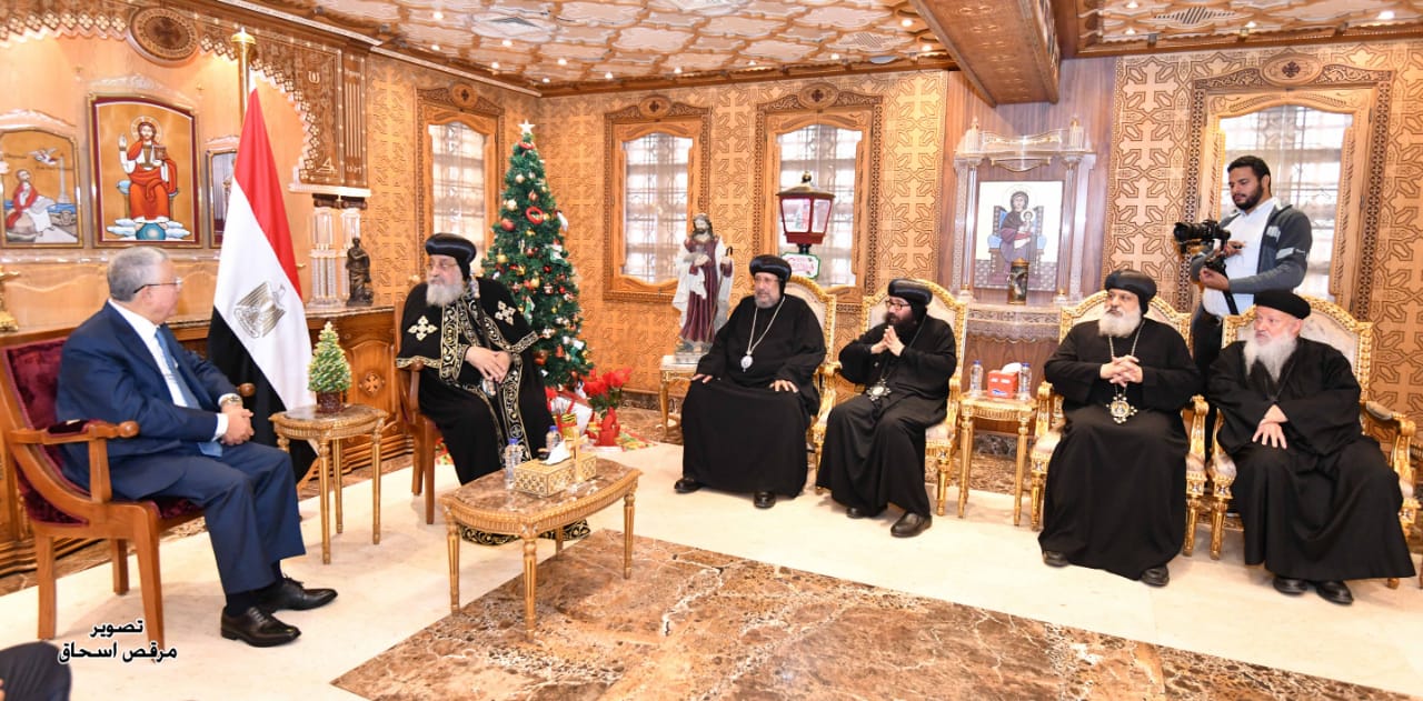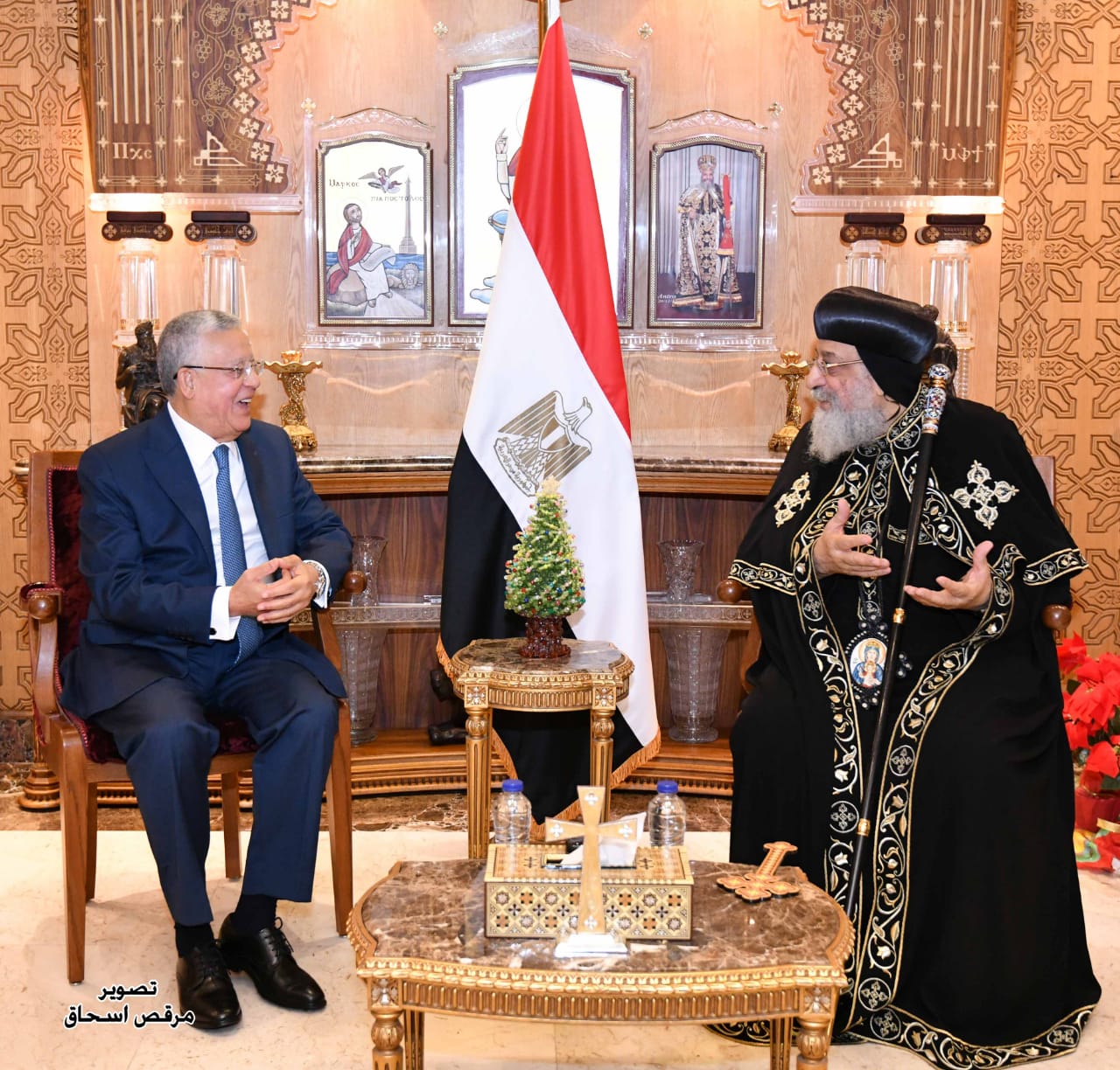 كما توجه برفقة المستشار أحمد سعد الدين وكيل أول المجلس والنائب محمد أبو العينين وكيل المجلس إلى المقر البابوي بالكاتدرائية المرقسية بالعباسية لتقديم التهنئة إلى قداسة البابا تواضروس الثاني بمناسبة عيد الميلاد المجيد.