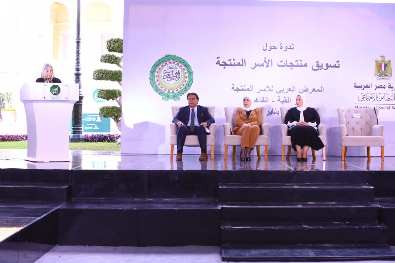 وأعربت وزيرة التضامن الاجتماعي عن سعادتها بتنظيم وزارة التضامن الاجتماعي هذا الحدث بالتنسيق والتعاون مع جامعة الدول العربية لتبادل الخبرات في جميع مناحي الحياة خاصة الاقتصادية والاجتماعية والعمل على الخروج من دائرة الفقر والحفاظ علي التراث وفتح المجال أمام الأسر العربية المنتجة، حيث سيتم إعطاء فرصة تسويقية لمنتجات الأسر المنتجة إقليميًا وعالميًا، خاصة أن المنتجات تتسم بالموروث المتعدد، فجميع الحرف التراثية ورائها سنوات من التعلم.