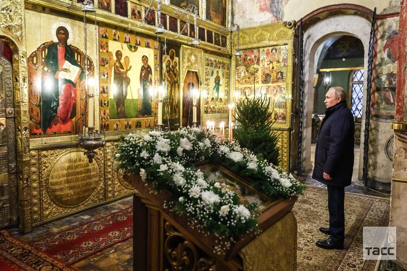 حضر الرئيس الروسي فلاديمير بوتين، اليوم السبت، قداس عيد الميلاد للكنيسة الأرثوذكسية بمفرده داخل كاتدرائية بالكرملين بدلاً من الإنضمام إلى المصلين الآخرين فى احتفال عام.