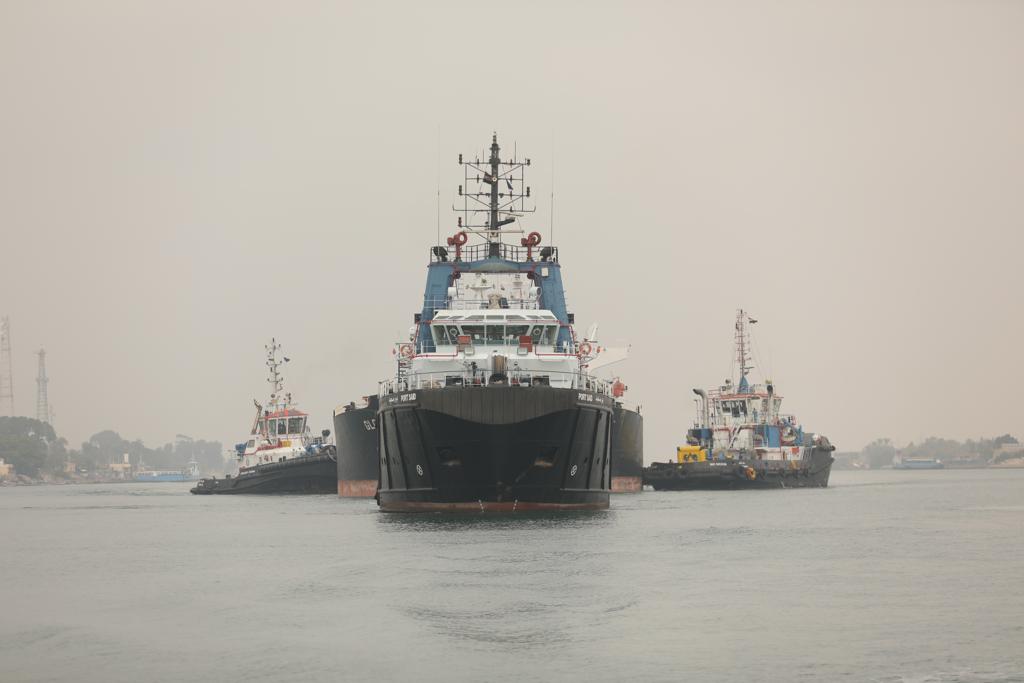 ينشر موقع تحيا مصر الصور الأولى لقطر سفينة "جولري" بعد تعطلها بقناة السويس.