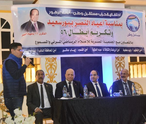 وفي محافظة بورسعيد نظمت أمانة قسم الزهور، احتفالية كبرى بمناسبة العيد القومي للمحافظة، بحضور أمين الحزب بالمحافظة، وأعضاء هيئة المكتب وأمناء الأقسام وعدد من القيادات الشعبية والتنفيذية ورموز سياسية وحزبية الإعلاميين، وأكد المشاركون في الحفل، علي تقديرهم للإبطال الذين قاوموا الاستعمار خلال حرب 1956 من أجل وطنهم، وفخرهم لجميع أن يتواجدوا بين أهالي هؤلاء العظماء الذين سطروا التاريخ بدمائهم حافرين قصص كفاحهن بقلوبهم، وتضمنت فقرات الحفل فقرة سمسية تفاعل معها الحضور، ووسط حفاوة بالغة، استمع الحاضرون من قيادات الحزب وأعضاءه، واختتمت الإحتفالية بتكريم عدد من أبطال المقاومة والشعبية وأسر الشهداء ببورسعيد وتسليم دروع رمزية لهم،تعبيرا من الحزب للوفاء لهم لما قدموه للوطن من بطولات وتضحيات لاستعادة العزة والكرامة الوطنية ضد الاحتلال.