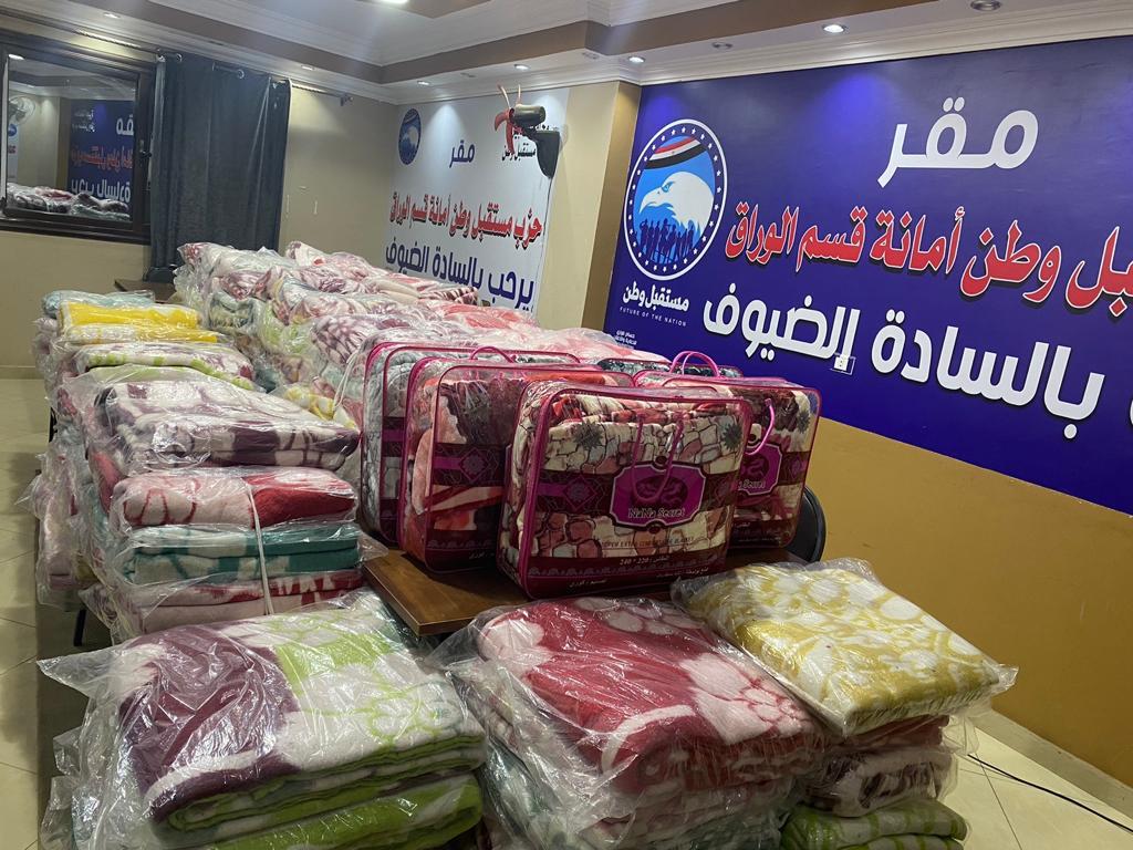 كما انتهت أمانة قسم الوراق، من المرحلة الأولى لمبادرة الحزب "شتاء دافىء"، بتوزيع البطاطين على عدد من دور رعاية الأيتام ويتم حاليًا تجهيز الدفعة الثانية من المبادرة لبدء توزيعها على أن يتم الاستمرار في تنفيذ المبادرة حتى تصل لجميع مستحقيها من أهالينا ببلاد الوراق تخفيفًا عنهم ودعمهم وتوفير كافة سبل الحياة الكريمة لهم.