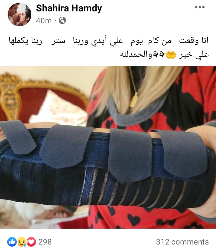 كشفت الفنانة شهيرة عن تعرضها لـ إصابة في يدها بسب تعرضها للسقوط، وذلك عبر حسابها الرسمي بموقع التواصل الإجتماعي “فيسبوك”.
