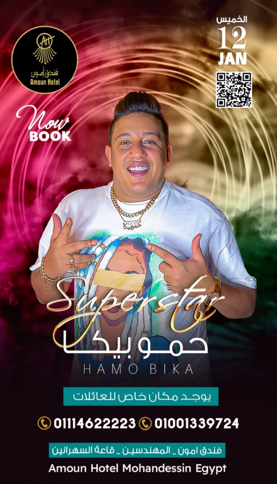 يستعد مطرب المهرجانات الشعبية حمو بيكا لإحياء حفلًا غنائيًا بفندق أمون بالقاهرة، ومن المتوقع أن يحقق نجاحًا كبيرًا.