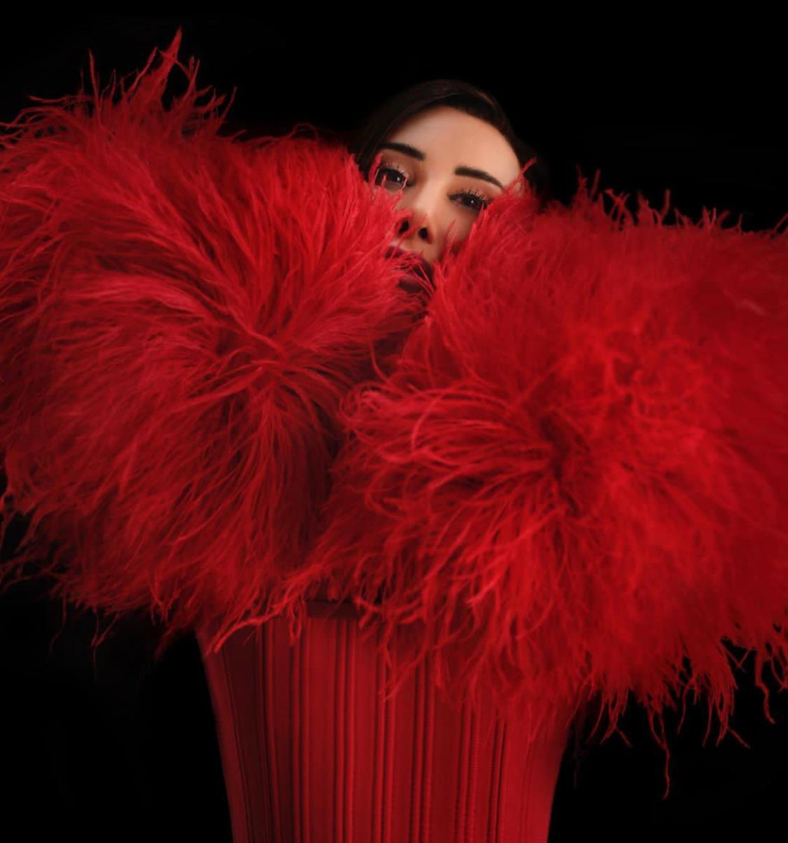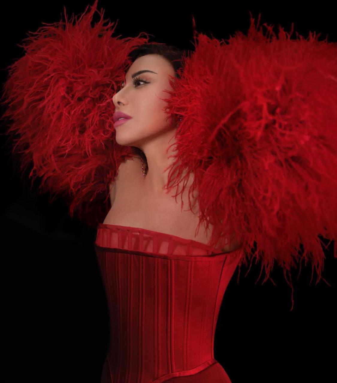 وظهرت نجوى كرم بفستان باللون الأحمر وتصميم جديد وغريب بعض الشئ، مما جعل الجمهور يتسأل عن سبب هذه الإطلالة الغريبة.
