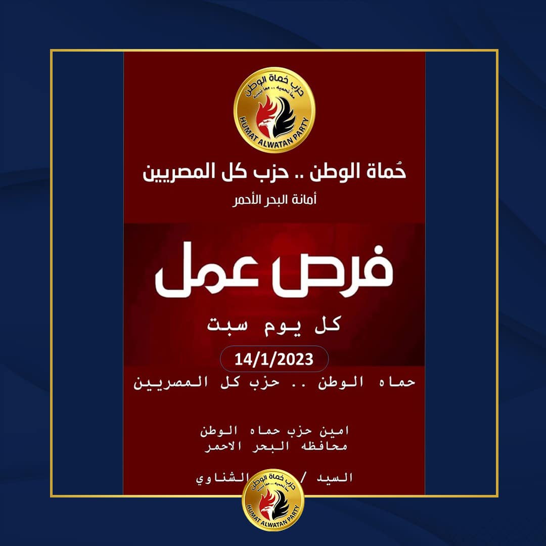 أعلن حزب حماة الوطن بالبحر الأحمر، استمرار مبادرة " فرص عمل كل يوم سبت".