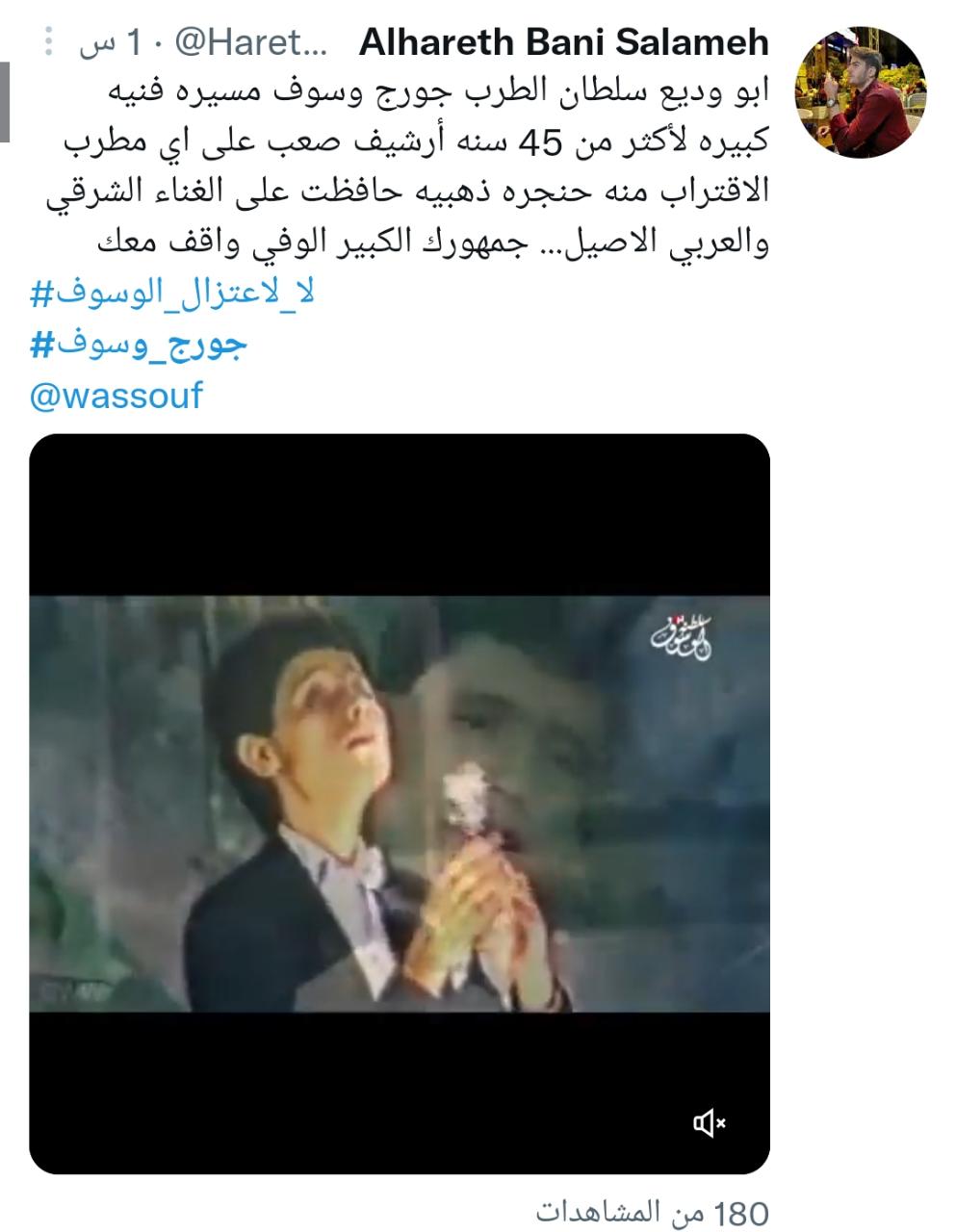 انتشرت أنباء في الساعات الماضية القليلة تفيد باعتزال المطرب اللبناني جورج وسوف الغناء بعد وفاة نجله وديع، مما أدى إلى تفعيل هاشتاج من قبل جمهوره ومحبيه عبر “تويتر” يقول “لا لاعتزال الوسوف”.