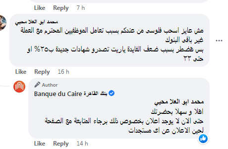 وأضاف: "بس هضطر بسبب ضعف الفايدة ياريت تصدرو شهادات جديدة بـ ٢٥% أو حتى ٢٢".
