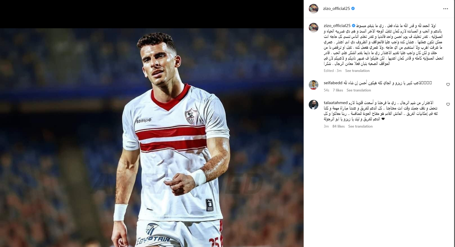 أحمد سيد زيزو يعتذز لجمهور الزمالك بعد الخروج من كأس مصر (صور)