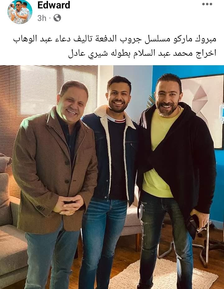 وحرص إدوارد على تنهئة نجله بـ انضمامه لـ مسلسل جروب الدفعة، اذ نشر صورة تجمعه به على حسابه الرسمي بموقع التواصل الإجتماعي “فيسبوك”: مبروك ماركو مسلسل جروب الدفعة تاليف دعاء عبد الوهاب اخراج محمد عبد السلام بطوله شيري عادل.