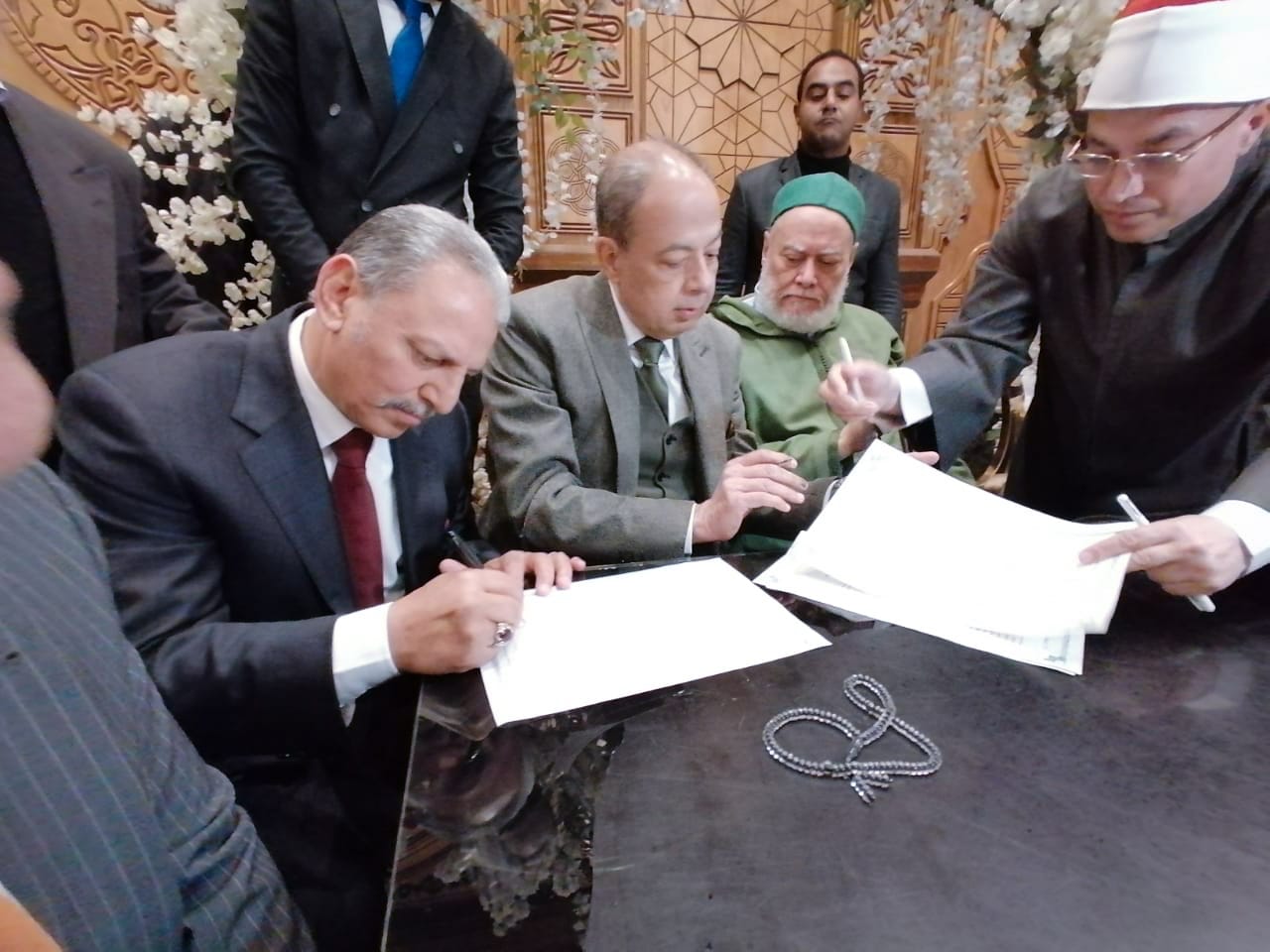 وعقد القران الشيخ علي جمعة رئيس اللجنة الدينية بمجلس النواب ، وسط أجواء دينية وإحتفالية أشعلت سماء الشيخ زايد.