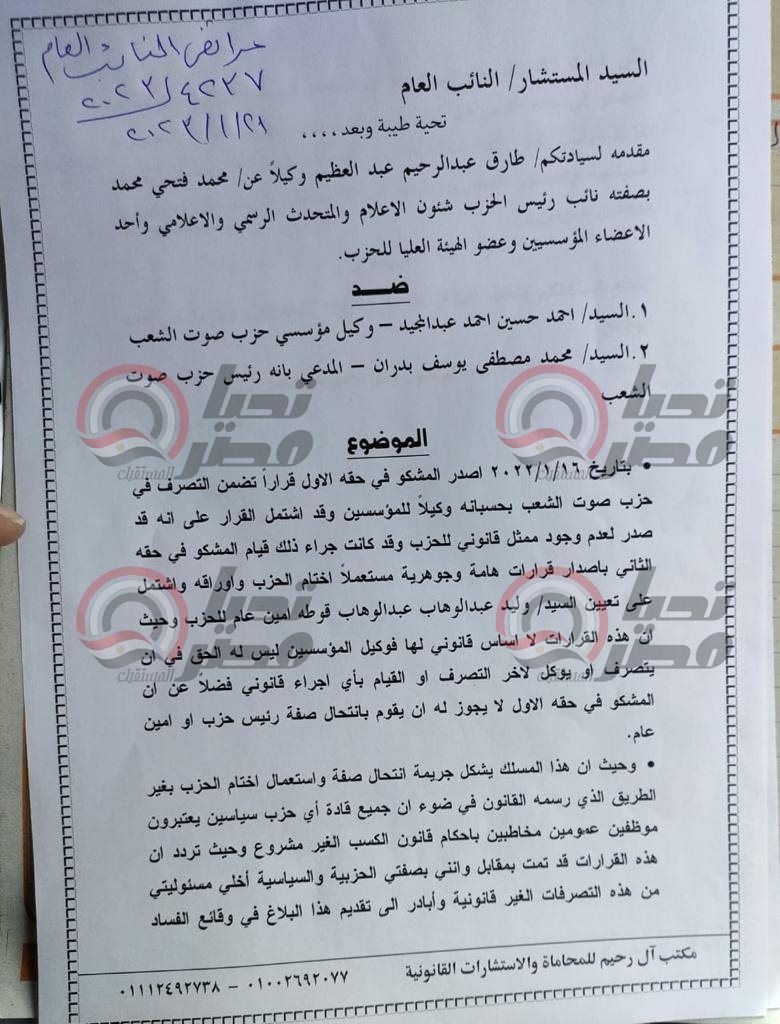 بتهمة سرقة حزب صوت الشعب.. بلاغ للنائب العام ضد محمد بدران والبراوي