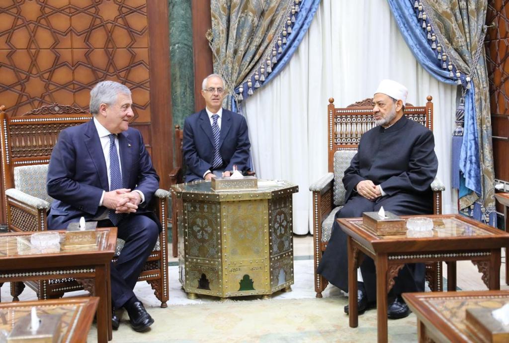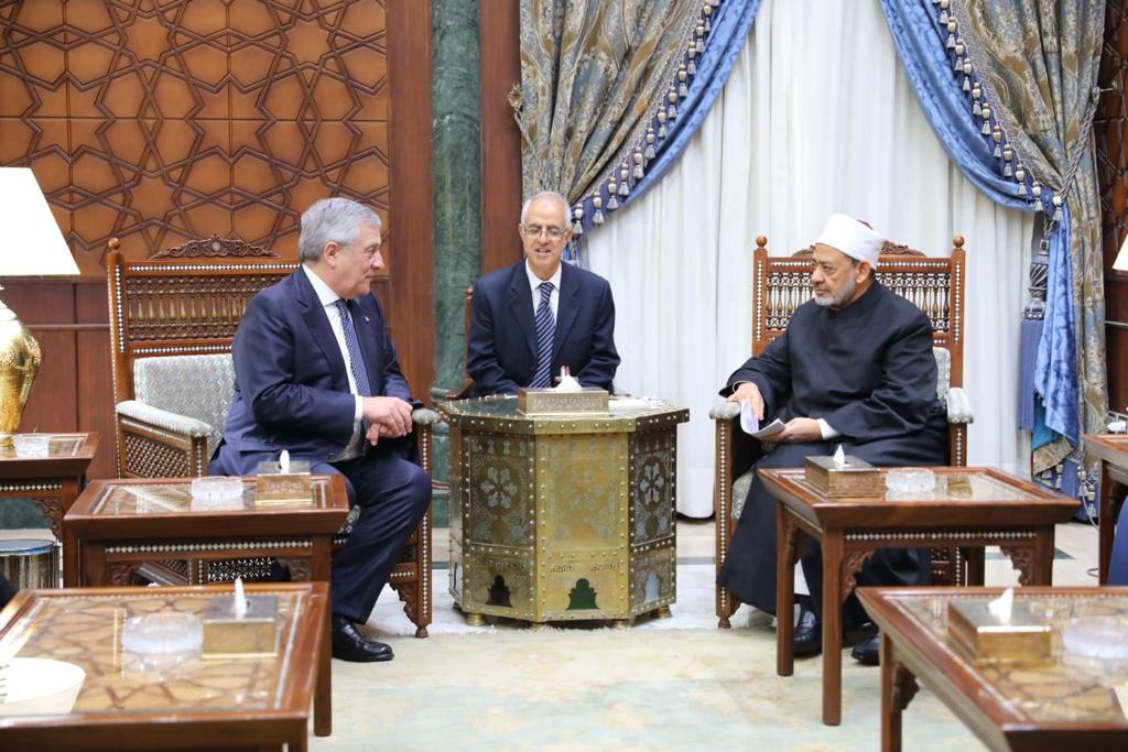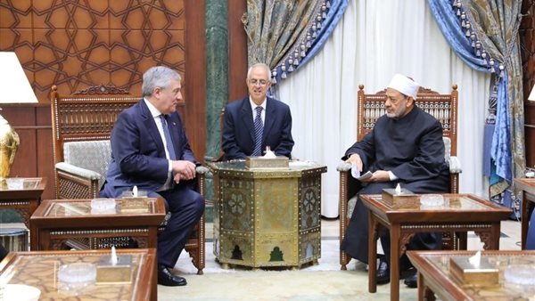 استقبل فضيلة الإمام الأكبر الدكتور أحمد الطيب، شيخ الأزهر الشريف، أنطونيو تاجاني، وزير الخارجية الإيطالي، نائب رئيس الوزراء، بمقر المشيخة، لبحث سبل تعزيز التعاون والحوار الديني والثقافي بين الشرق والغرب.