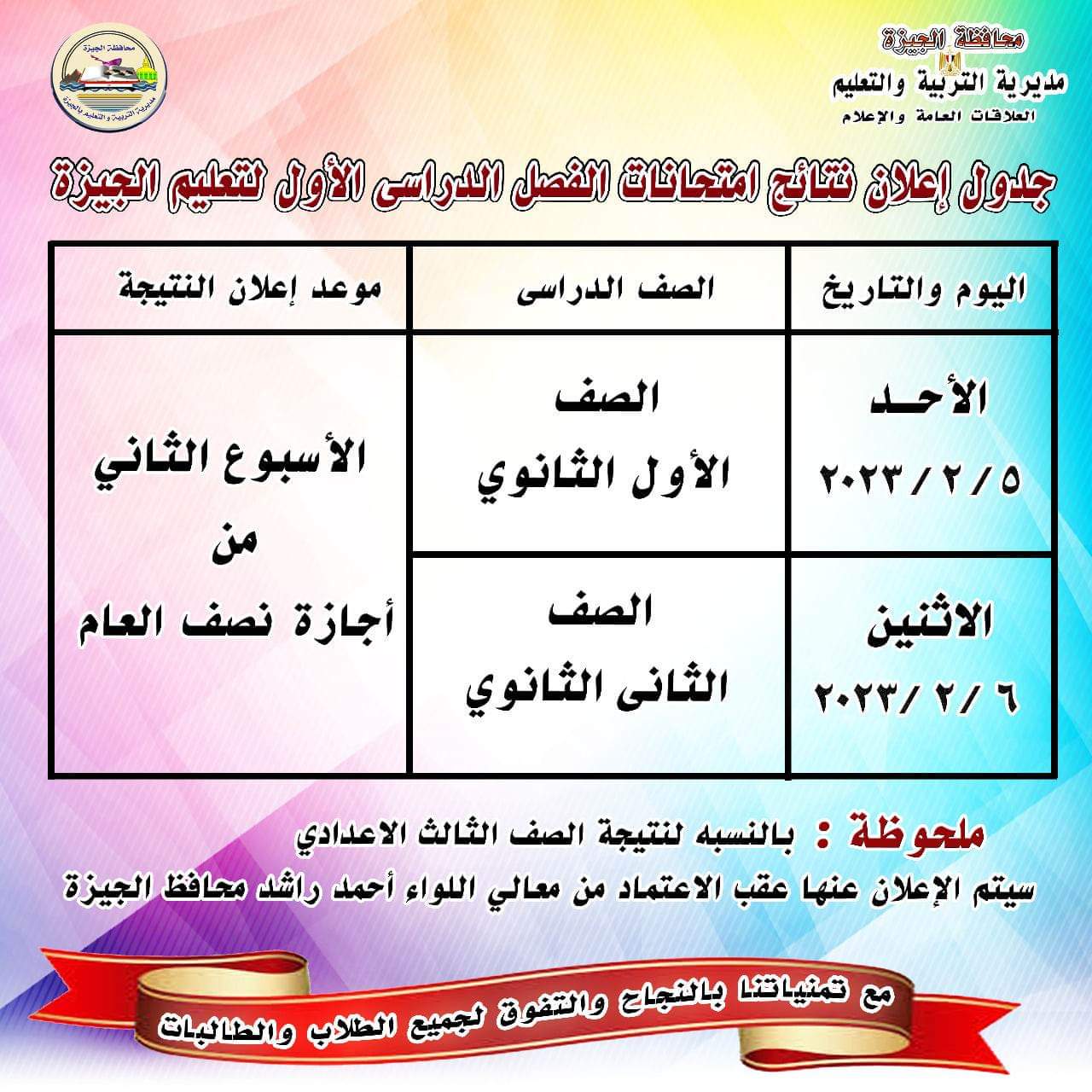 ننشر مواعيد ظهور نتيجة الترم الأول بمحافظة الجيزة لكل الصفوف