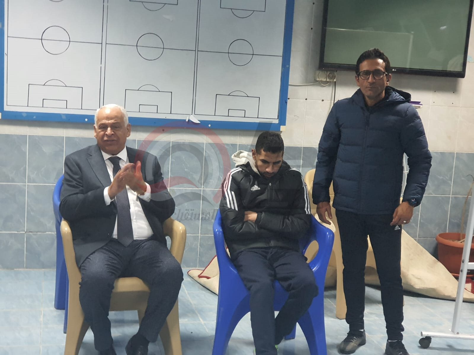 وظهر مؤمن زكريا مع أحمد سامي وصلاح أمين وأحمد حسن مكي بالإضافة إلى فرج عامر رئيس نادي سموحة، خلال اجتماعه مع اللاعبين من أجل تحسين وضع الفريق بعد رحيل طارق العشري.