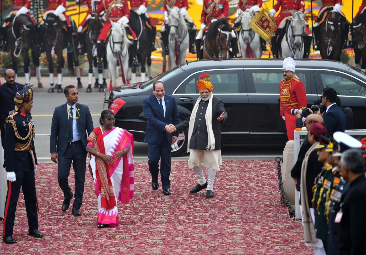 ويتواجد الرئيس عبد الفتاح السيسي في مدينة نيودلهي عاصمة جمهورية الهند، تلبية لدعوة رئيس الوزراء الهندي "ناريندرا مودي" للمشاركة كضيف شرف في احتفالات الهند بيوم الجمهورية، والذي يوافق اليوم الذي بدأ فيه العمل بدستور جمهورية الهند عام ١٩٥٠".