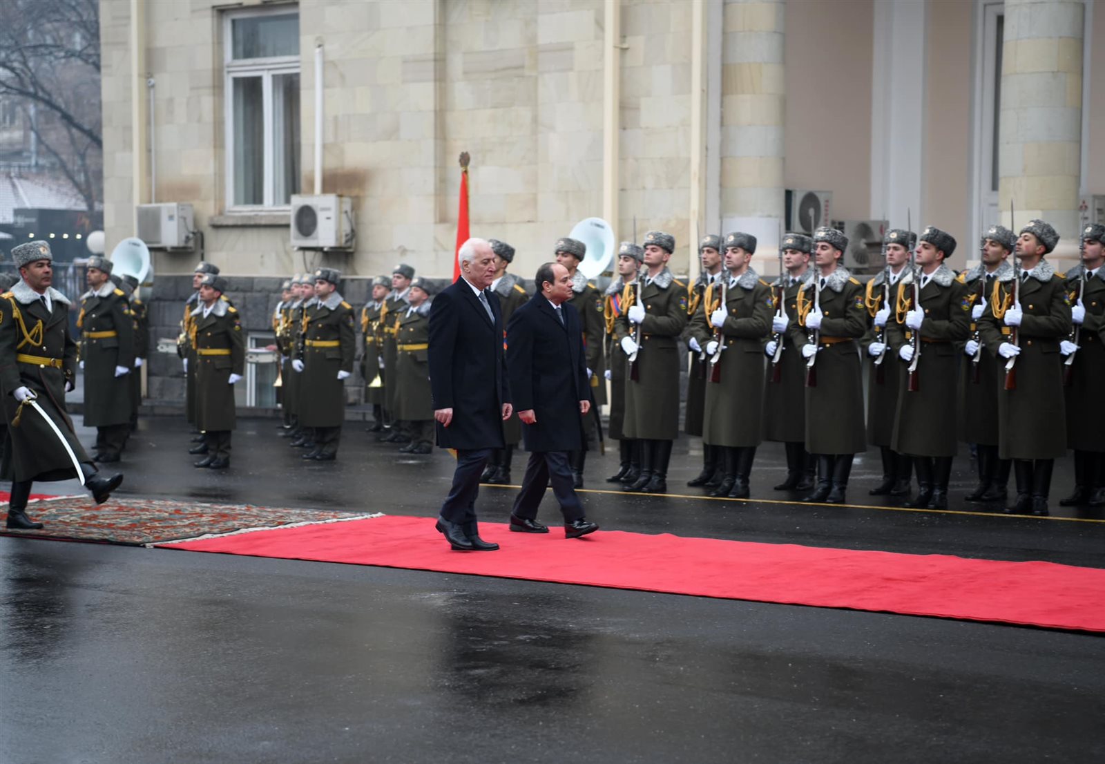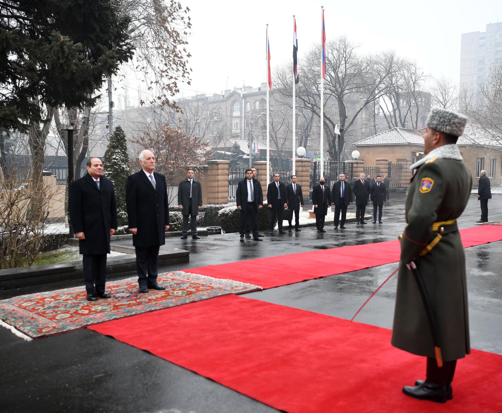 التقى الرئيس عبد الفتاح السيسى اليوم بالقصر الرئاسي في العاصمة الأرمينية ييريفان مع الرئيس "فاهاجن خاتشاتوريان"، رئيس جمهورية أرمينيا، حيث أقيمت للرئيس مراسم الاستقبال الرسمي وتم عزف السلامين الوطنيين واستعراض حرس الشرف.