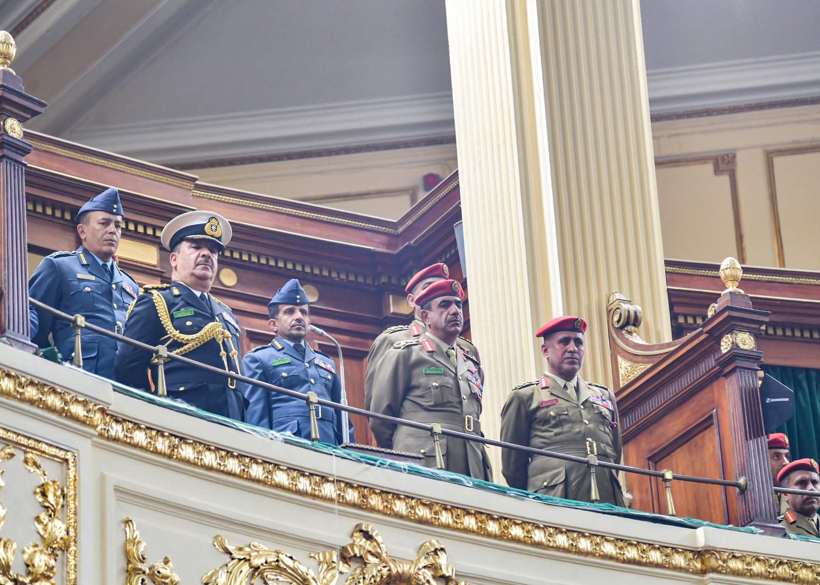 حضر وفد عسكرى من كلية الدفاع الوطنى العمانية جانباً من الجلسة العامة للبرلمان من شرفات المجلس حيث رحب بهم المستشار الدكتور حنفى جبالى، رئيس مجلس النواب قائلا:" يحضر معنـــا بشرفــات المجلــس الآن من سلطنة عُمان الشقيقة، وفد عسكرى من أعضاء هيئة التدريس (دارسى الدورة العاشرة بكلية الدفاع الوطنى العُمانية..فبإسمكم جميـعاً وباسمى، نرحب بهم جميعاً فى مجلس النواب).