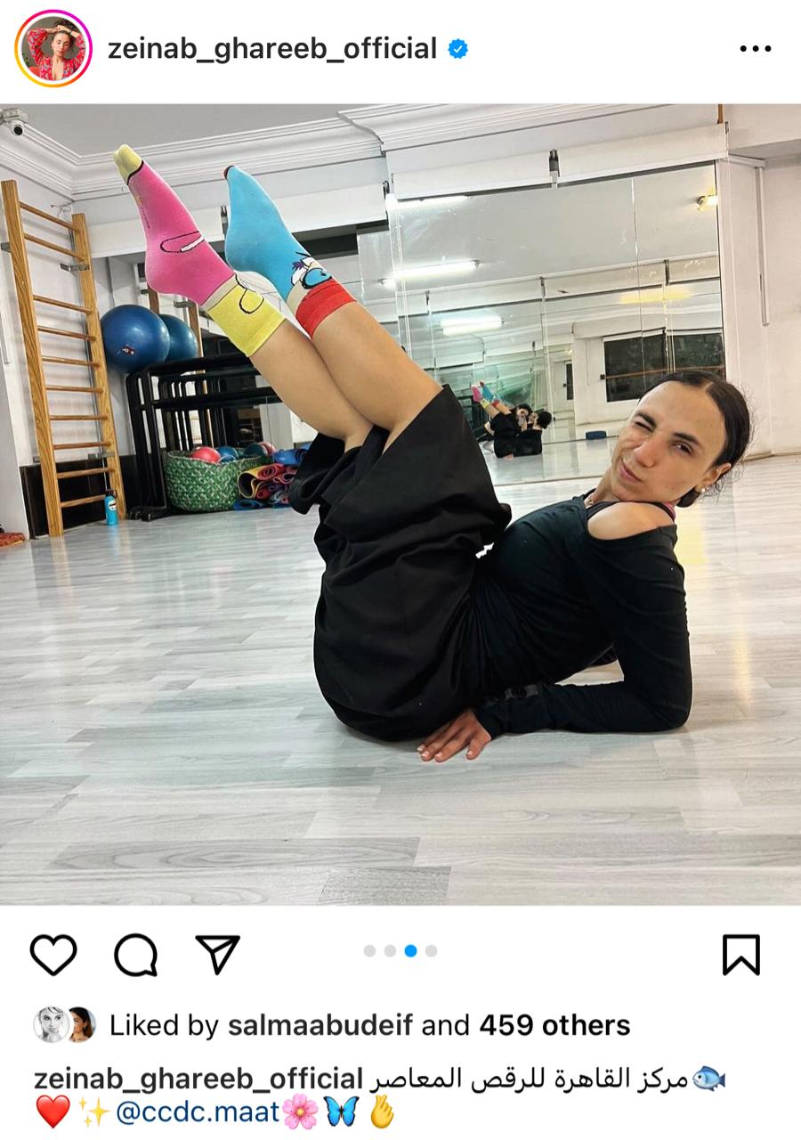 ونشرت زينب غريب صور لها داخل جلسات الرقص، معلقة: مركز القاهرة للرقص المعاصر.
