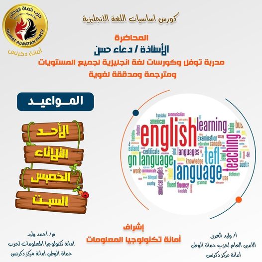 للطلبة والخريجين.. حماة الوطن يعلن تقديم كورس لغة إنجليزية مدعم بمركز دكرنس