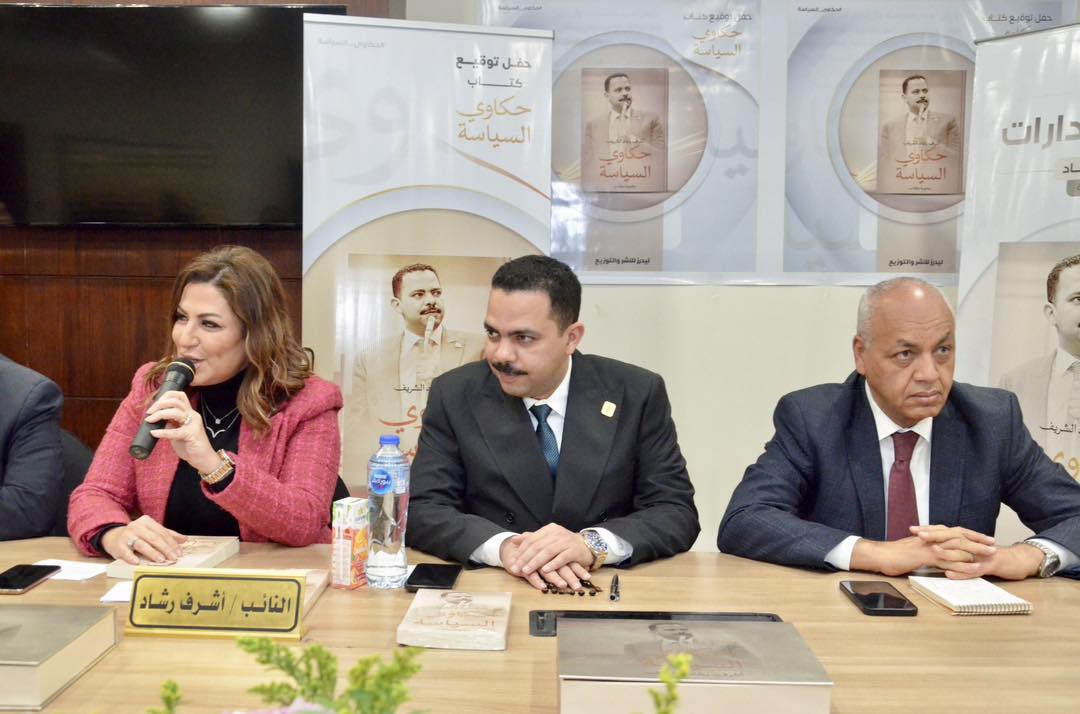استضافت الدورة الـ 54 لمعرض الكتاب، مساء اليوم، حفل توقيع كتاب "حكاوي السياسة" للمهندس أشرف رشاد الأمين العام ، النائب الأول لرئيس حزب مستقبل وطن ، ممثل الأغلبية بمجلس النواب.