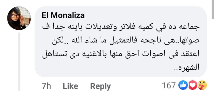 وجاءت تعليقات الجمهور على أغنية ليلى أحمد زاهر الجديدة: "ما هو مش بالعافية يا ليلى والله، جماعة ده في كمية فلاتر وتعديلات باينة جدا في صوتها..هى ناجحة فالتمثيل ما شاء الله ..لكن اعتقد فى اصوات أحق منها بالأغنية دي تستاهل الشهرة، هي فعلا ماعندها موهبة الغناء لكن هي بتحب الغناء وأهلها دعموها بمدرسين موسيقى مشاهير طبعًا وصلوا بيها لطبقه الصوت دي مع طبعا شويه ايديت صوت بس في النهاية حلو مش وحش، كنا ناقصين تغني كمان دا الواحد مستحملك بالعافية تمثلي.