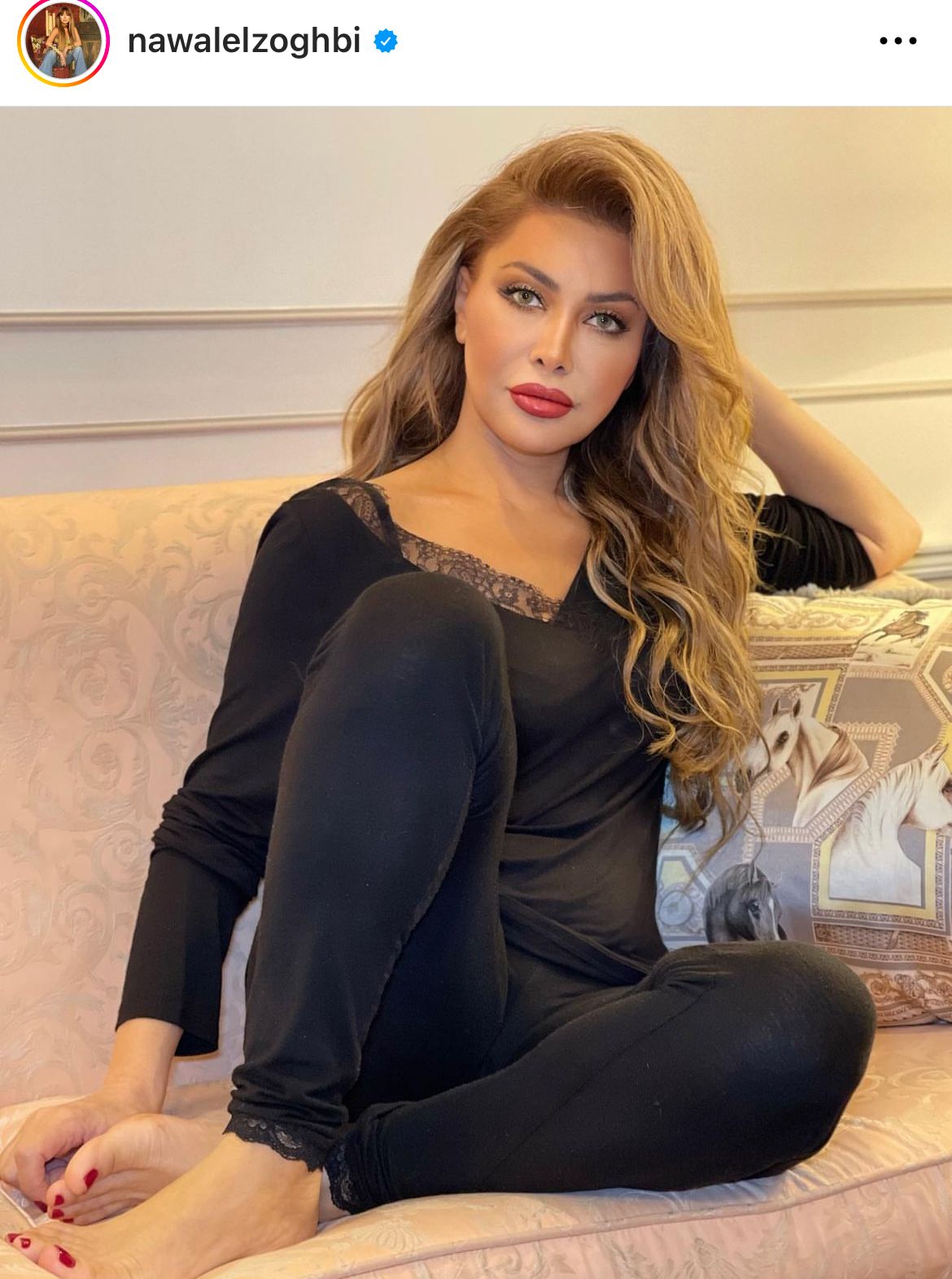 وظهرت نوال الزغبي ببيجامة سوداء، مع شعر منسدل على ظهرها وروج أحمر، مما نال إعجاب متابعيها.