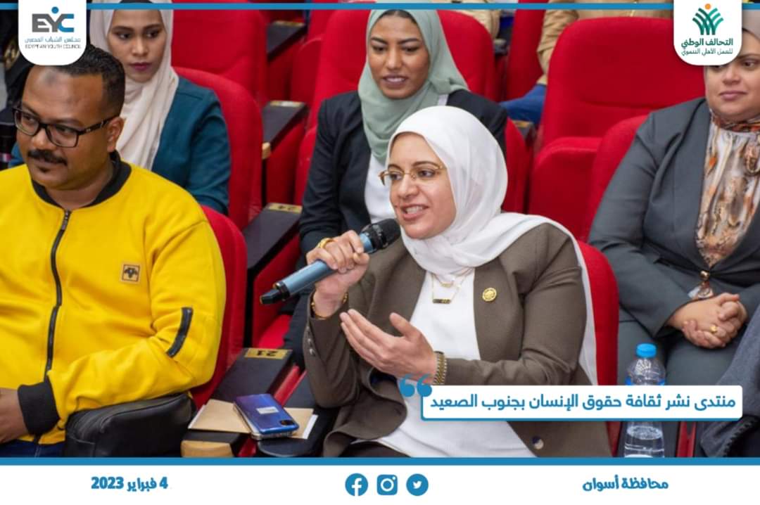 وطالبت النائبة ريهام عبدالنبي، الشباب والفتيات المعنيين بالأمر في ملف حقوق الإنسان النزول إلى محافظة أسوان وزيارة المراكز والقرى لنشر التوعية والثقافة بين المواطنين بحقوقهم وواجباتهم تجاه المجتمع.