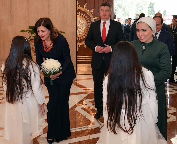 وكتبت السيدة انتصار السيسي، على صفحتها على موقع التواصل الاجتماعي على فيس بوك: “أرحب بالسيدة الأولى لجمهورية كرواتيا، سانيا ميلانوفيتش، في بلدها الثاني مصر. لقد كان لقاؤنا حافلا بالمناقشات العميقة والثرية حول ملفات الحماية الاجتماعية التي تتبناها الدولة المصرية في التعليم والتوعية لتنظيم النسل والحد من الزواج المبكر، إلى جانب الجهود في مجال الصحة العامة والقضاء على فيروس سي والأمراض المستوطنة”.