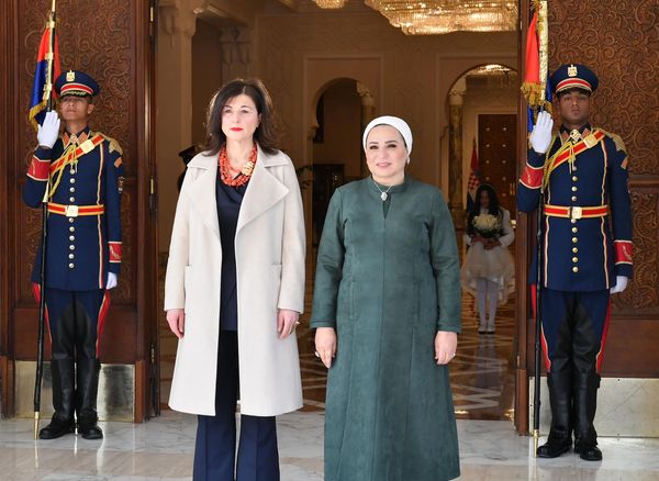 استقبلت السيدة انتصار السيسي، قرينة رئيس الجمهورية، السيدة الأولى لجمهورية كرواتيا، سانيا ميلانوفيتش، بقصر الاتحادية، وذلك على هامش الزيارة التي يقوم بها الرئيس الكرواتي لمصر.