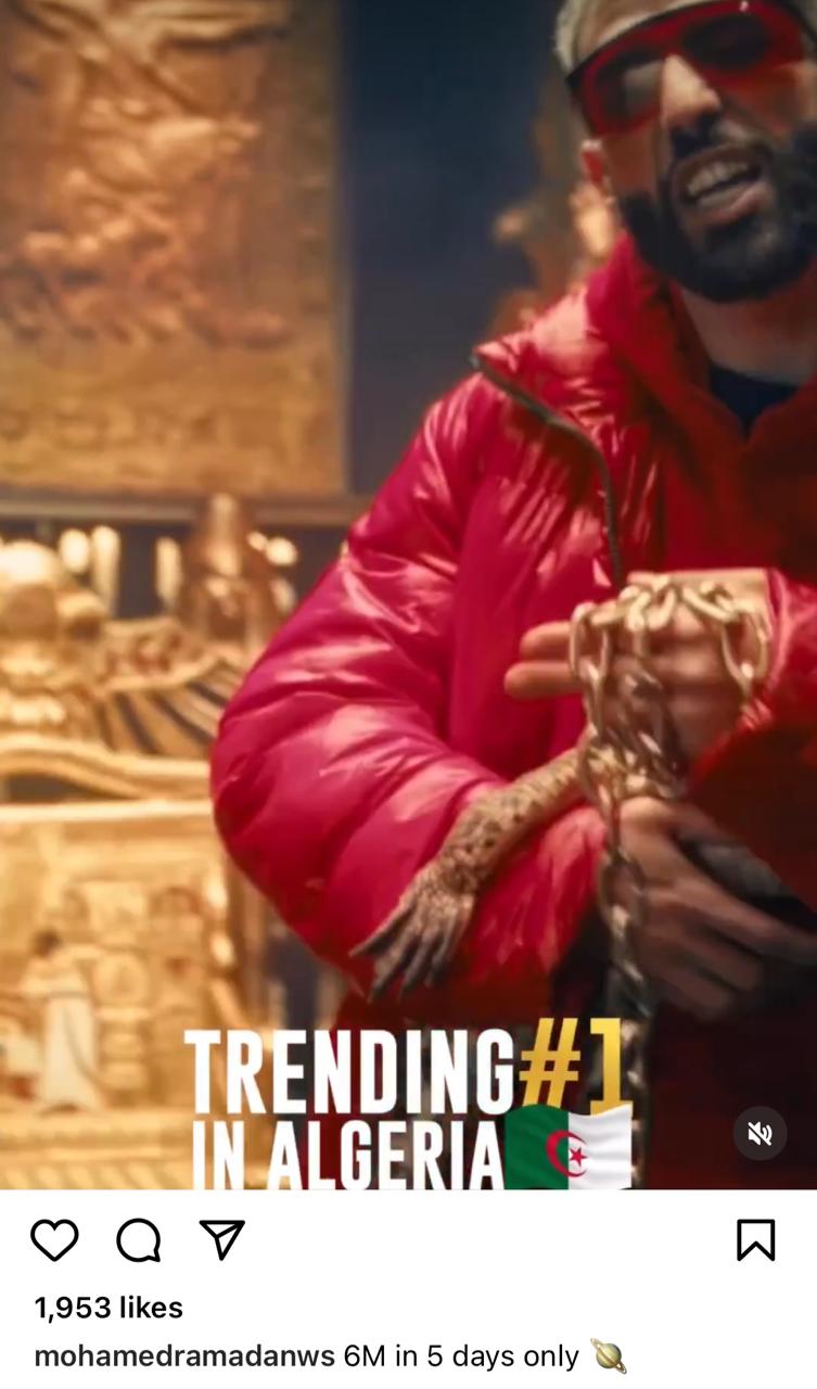 ونشر محمد رمضان مقطع من الأغنية عبر حسابه الرسمي بموقع انستجرام، معلقًا: 6 مليون في 5 أيام فقط.