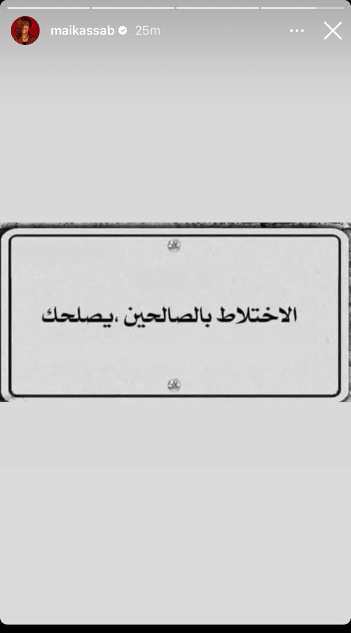 ونشرت مي كساب عبر خاصية ستوري صورة مكتوب بها: الاختلاط بالصالحين يصلحك.