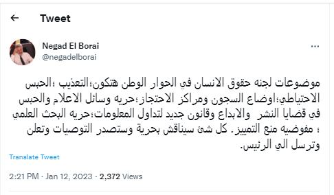 نجاد البرعي: الحوار الوطني سيناقش بحرية وستثدر التوصيات وترفع للرئيس