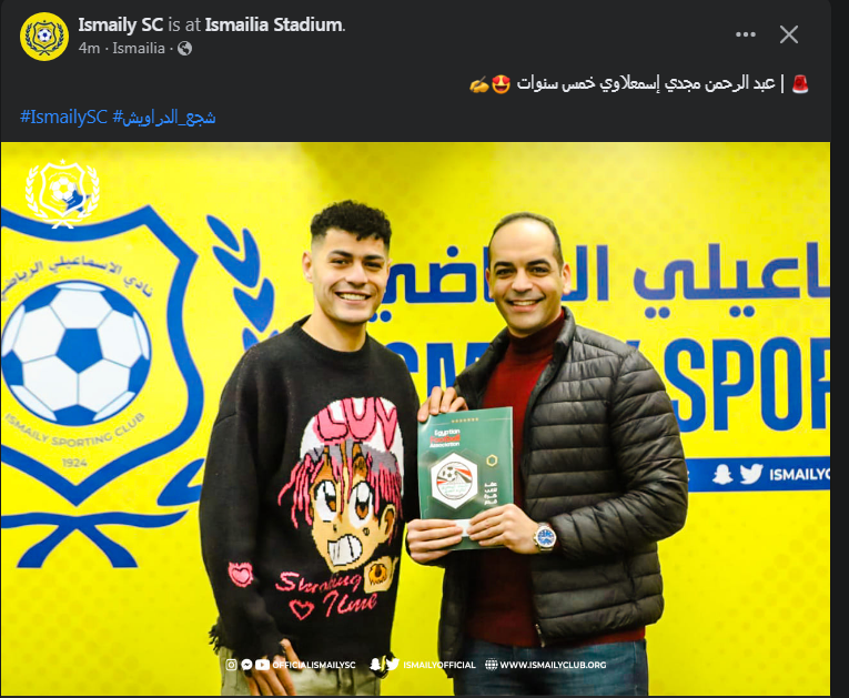 رسمياً.. نادي الإسماعيلي يعلن تجديد عقد عبد الرحمن مجدي لمدة 5 مواسم