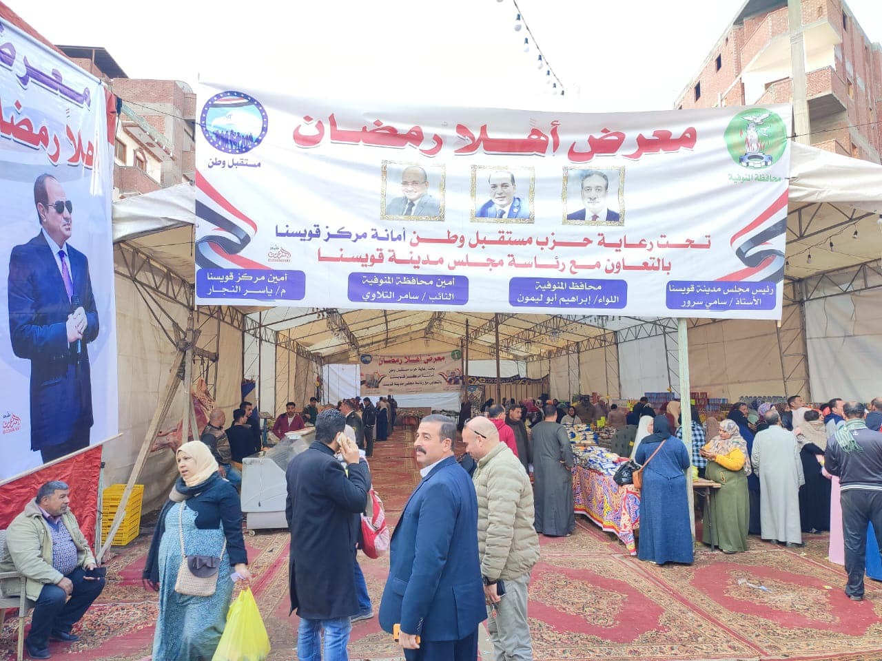 وفي محافظة المنوفية، أقامت أمانة مركز قويسنا، معرض "أهلا رمضان"، لبيع السلع الغذائية والإستهلاكية والخضروات، بأسعار مخفضة للمواطنين، داخل المدينة، ويضم المعرض جميع المستلزمات الأساسية والإحتياجات الضرورية والتى يحتاجها المواطن بقويسنا وقري المركز، ويشمل المعرض جميع الخضروات والفاكهة والمواد الغذائية الأساسية واللحوم والدواجن وغيرها، وأكد زوار المعرض أن أسعار جميع السلع مناسبة وأقل من المعروض بجميع المحلات التجارية بنسبة تتجاوز الـ30%.