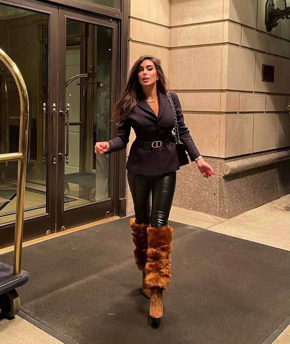 وظهرت ياسمين صبري بـ بوت فرو هفان، مع بنطال جلد أسود وجاكيت بنفس اللون، مما نال إعجاب متابعيها بشكل كبير.