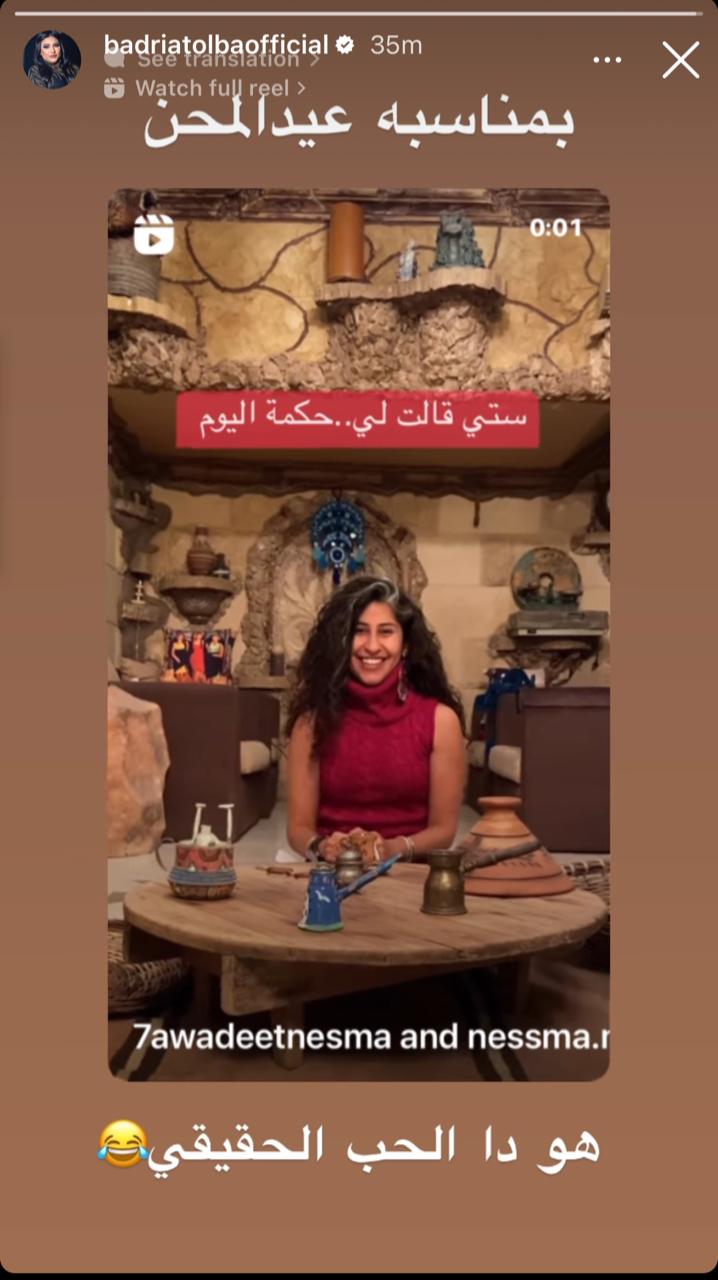 وعلقت بدرية طلبة على الفيديو في خاصية ستوري: بمناسبة عيد المحن، هو ده الحب الحقيقي.