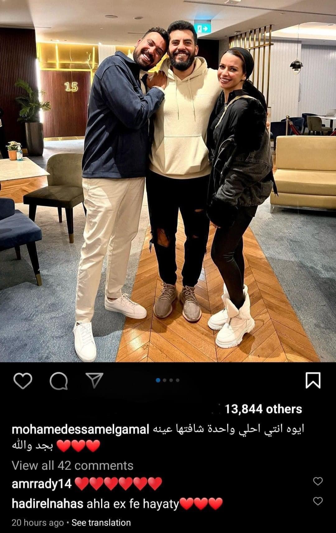 وبعدها علق عمرو راضي على الصورة بقلوب، وخطيبته هدير النحاس علقت: أحلى ex في حياتي، وكلمة ex تعني حبيبها السابق.