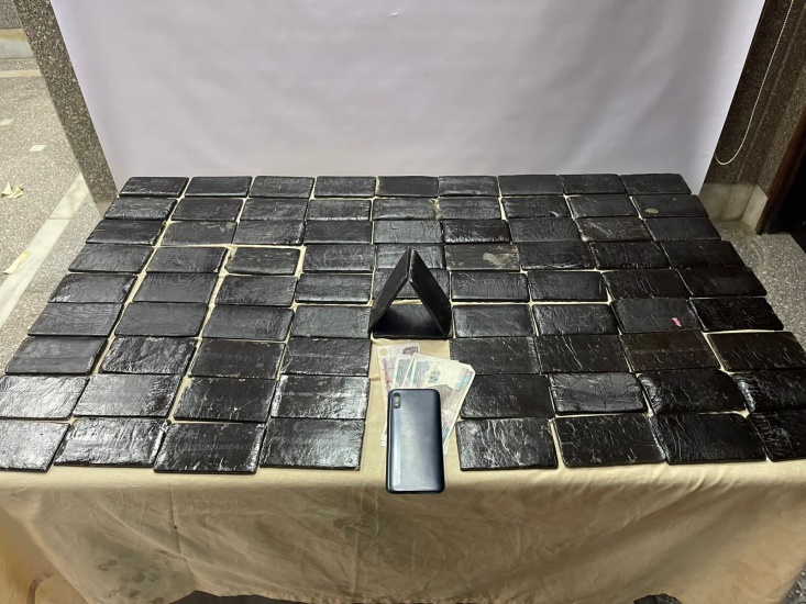 كمية من مخدر الحشيش وزنت (16,605 كيلو جرام)