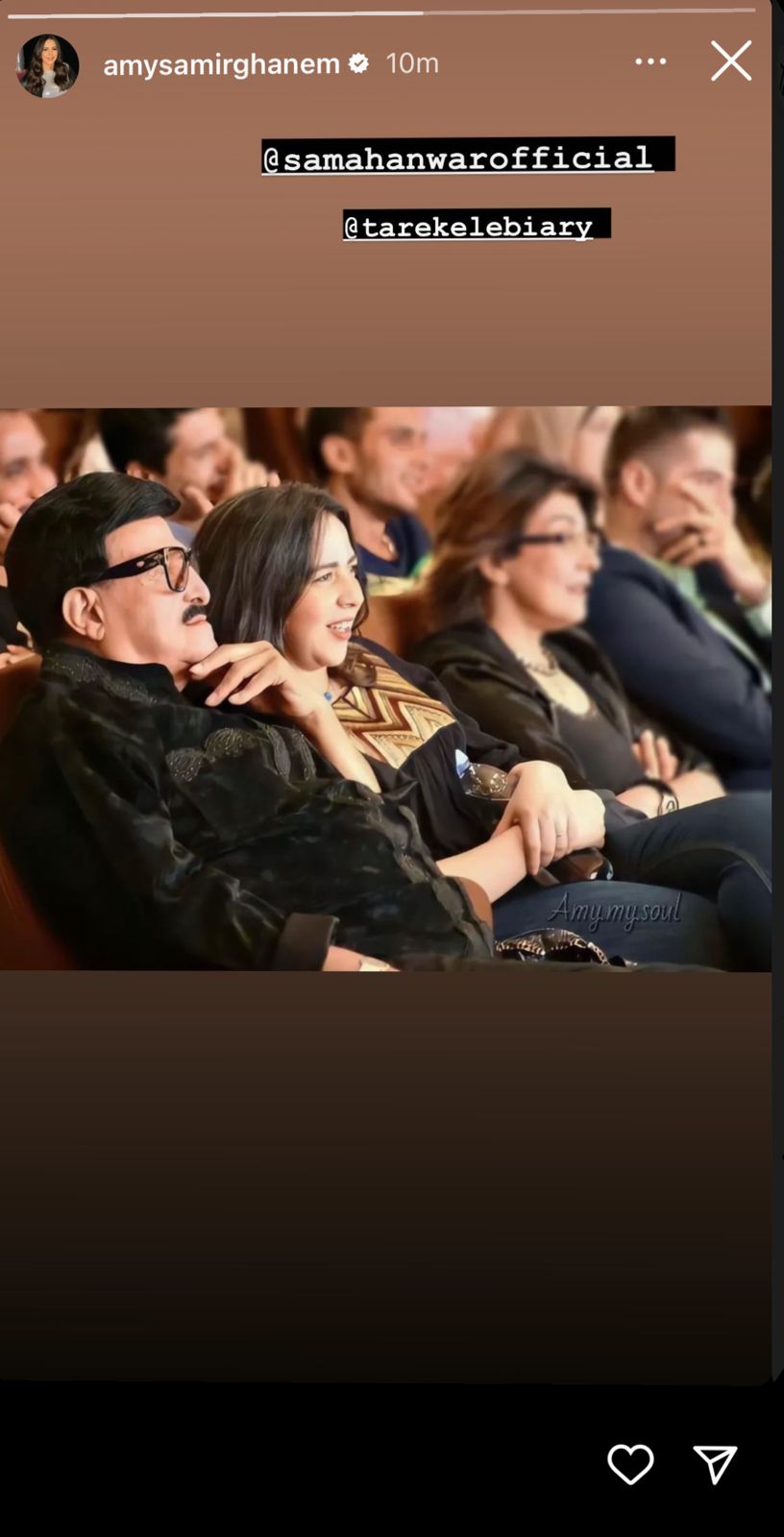 ونشرت إيمي صورة تجمعها بوالدها سمير غانم أثناء تواجدهم في عرض مسرحي، عبر خاصية ستوري بانستجرام.