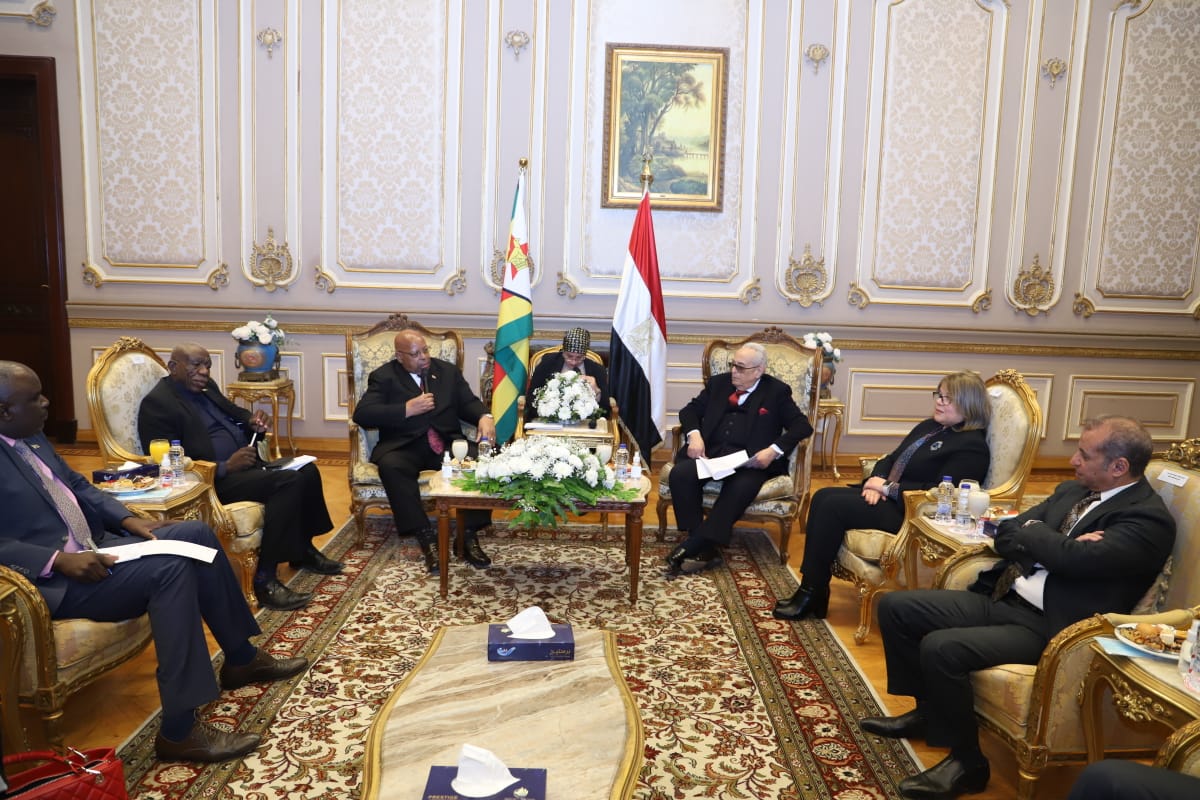 المستشار بهاء أبوشقة وكيل مجلس الشيوخ يستقبل رئيس برلمان زيمبابوي